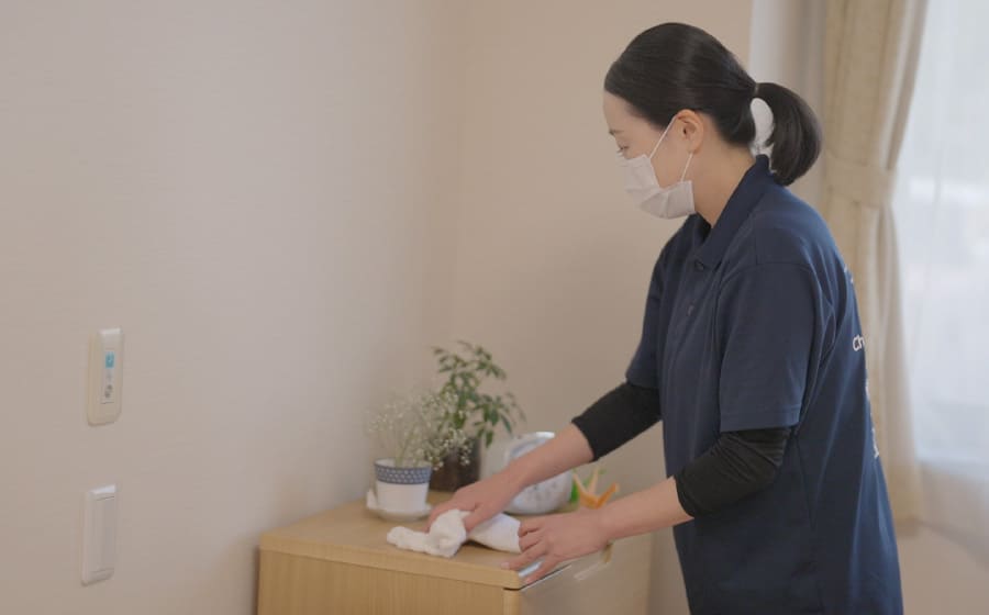 ホームヘルパーとして訪問介護を行っており、高齢者や障害のある方の自宅に訪問し、入浴や排泄、移乗介助などの身体介護をしたり、調理・掃除・洗濯・買い物など日常生活全般の家事支援を行っています。ただ家事を代わりにするだけでなく、本人と一緒に行うことで自立支援を促すことも大切な役割です。また、介護をしている家族のサポートも重要な仕事です。